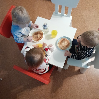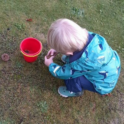 So sammeln wir herbstliches Material, um damit zu basteln und Zuordnungsspiele zu spielen. Wir backen gemeinsam Weckmänner und bereiten uns natürlich schon auf St. Martin vor, indem wir unsere Laternen basteln, uns die Martinsgeschichte ansehen und zusammen St. Martinslieder singen.