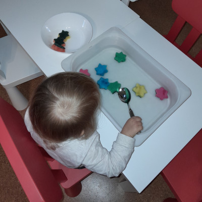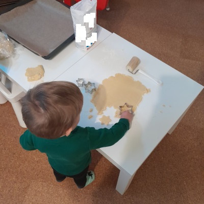 So haben wir zum Beispiel Bilderbücher zum Thema Sterne und Nikolaus betrachtet, Wasserspiele gespielt, Sterne aus Murmeltechnik sowie Tischlaternen gebastelt und natürlich wurden in der Adventszeit auch leckere Plätzchen gebacken.